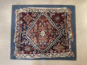 Late 19th century Quashgai bagface, stunning vibrant colours, some old re-weaves 0.69m by 0.68m Contact gene@heritage-antique-rugs.com for more pics, price etc.