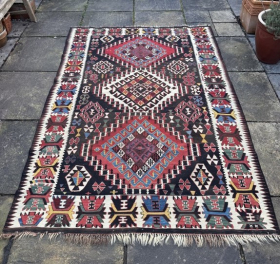 Late 19th century Caucasian kelim, Kuba area. Stunning design and colours, great condition. 2.31m by 1.60m Contact gene@heritage-antique-rugs.com for more pics, price etc.