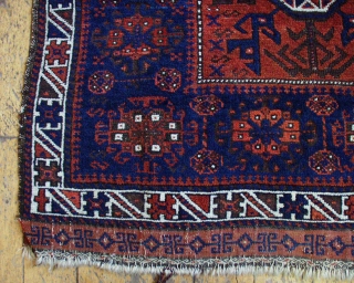 Antique baluch bagface. High quality weaving with good lustrous pile. All natural colors. Nice medium blue. 19th c. piece. 2' 9" x 2' 11"