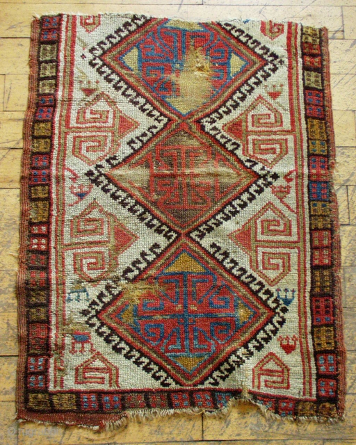 Antique Turkish yastik fragment. Nice older example of the type but in "as found" condition. All good natural colors. 19th c. 2' 2" x 2' 10"
