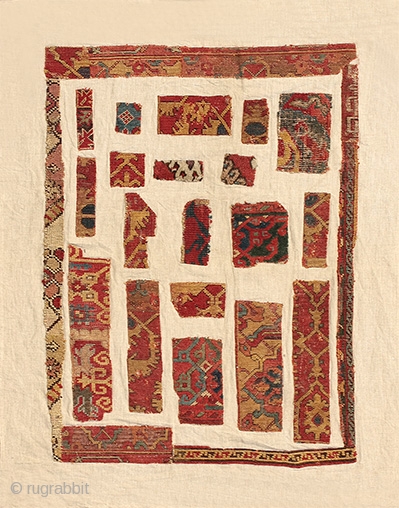 a collection of Anatolian rug fragments, 16th-17th century, 110 x 88 cm (43.5 x 35 inches). Featured in our latest web exhibition entitled as found - a collection of unrestored early rugs and kilims, currently online at www.albertolevi.com