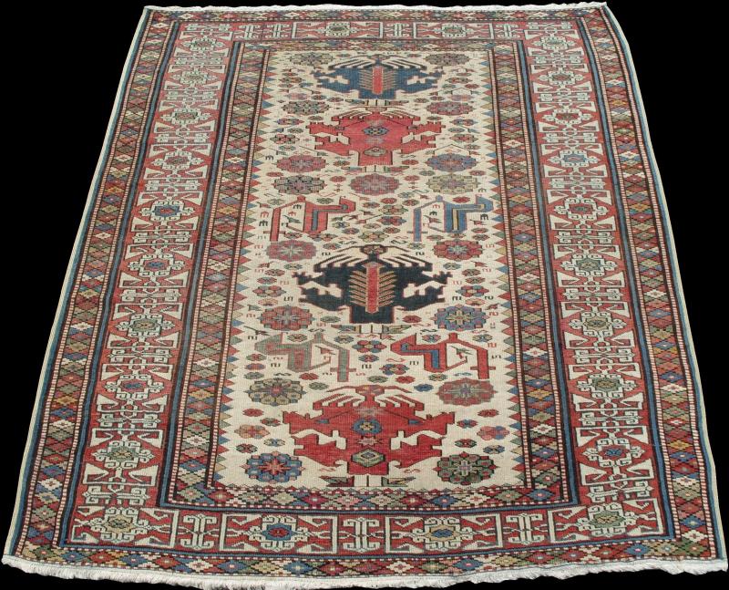 An endearing Caucasian Shirvan Rug with lovely ivory field, 19th Century, 5 x 4.3 ft. www.rugspecialist.com