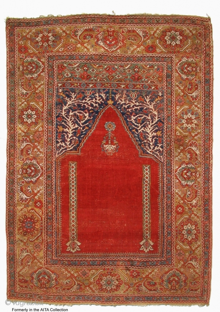 Ghiordes prayer rug, about 1700, higly collectible. Info & similar examples on www.transylvanianrugs.com