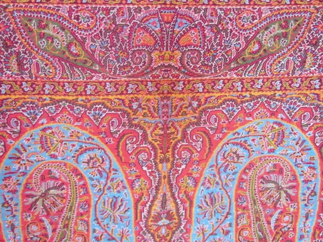 I have rarely seen a french cashmere shawl with so contrasting colors and graphic design. No moth hole at all. This shawl has probably never see the sun light. Shawls in this category are very rare to find.
