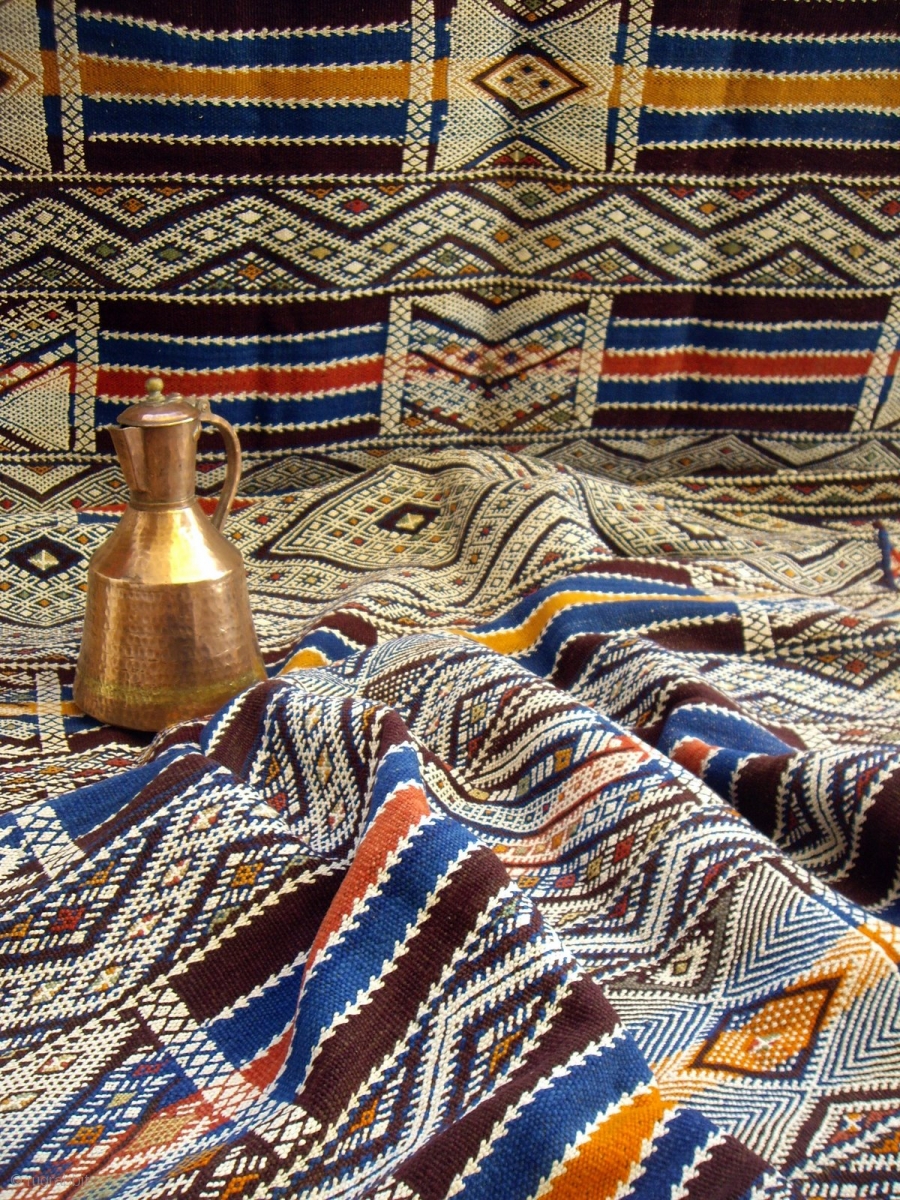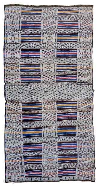 http://www.oldorientalcarpet.com/Morocco_4.html <<--Here for infos. moroccan middle atlas berber flat weave - This large and magnificent kilim is from the Ait Arfur Berber group in the Middle Atlas mountain range. The best pieces, such as this, are usually intricately embroidered with designs in white cotton. Dyes such as henna, indigo and madder have been used. It dates from the mid 20th century and is impeccable. Ref. 2195. Size 347 x 140 cms. Euros 1850. sold. thank you.