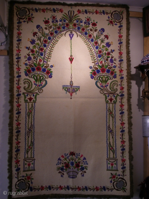 Ottoman felt prayer  silk thread and gold and thread work Circa 1900 or 1910