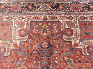 a Persian Heriz Carpet, 335x255 cm (10.1 x 8.4 ft), excellent condition, full pile, no repairs, needs a light wash, ca 1930. www.rugspecialist.com
