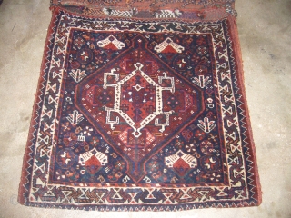 Qashqai Saddle Bag Complete with Kilim back,Perfect condition not a single repair,full soft pile,beautiful colours,very fine weaving quality.E.mail for more information.