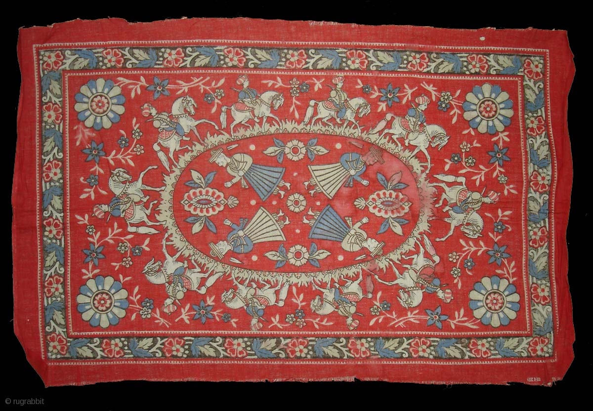 Roller Print Chakla From Saurashtra Gujarat.Its made in Manchester England For Indian Market known As Var Ghora.Its size is 35cm x 52cm.Very Rare Piece(DSC08806)