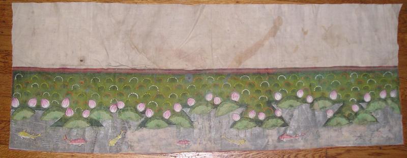 small North Indian tempura painting on textile with lotuses and fish. Perhaps Kotah? circa 18th century?