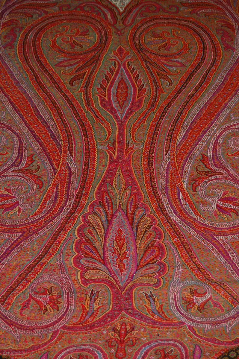 Spectacular 19th Century Indian Pieced Shawl in great condition, very good colours and fine embroidery, singed and very unusuel designe on both end, black on one side and white on other, the size is about 280/170 cm. Rare Piece.