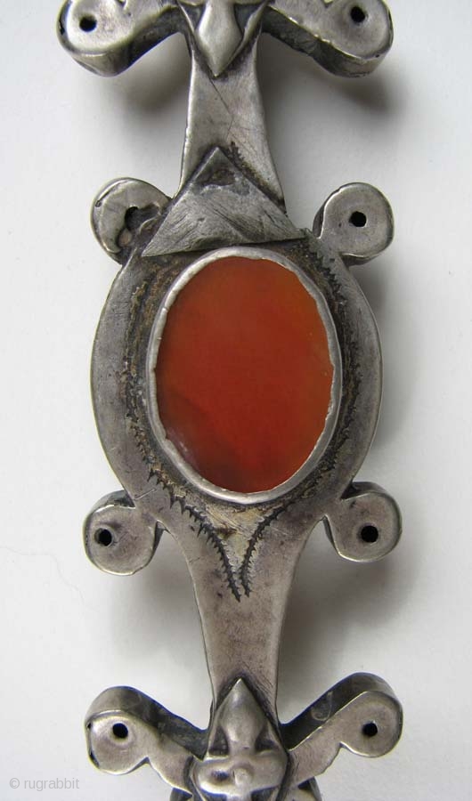 Turkmen Bead, Silver with Carnelian, 1” x 3.5” Late 19th/Early 20th Century