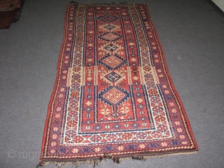 very beautifull rug.kurdish?caucasian?it has great colours and a rare abrash.the abrash is mainly at the narrow border.it has two human figures.one end is cut but the rest is in great condition,super quality wool.very attractive.