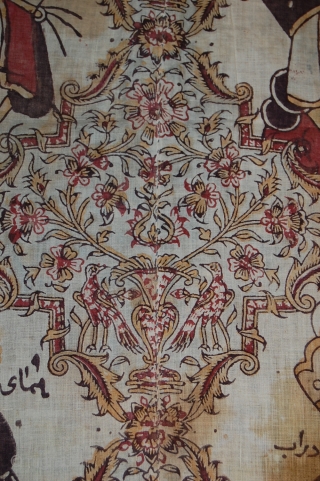 Very NIce rare 19th Century Persian kalamkar, in great condition, only in one or two areas, its un stiched but very easy to stich it back, the sceen in the return if Qajar Soldiers, size is about 220/170 cm