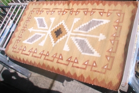 fresh from my Rug Picking: a Turn of the century Navajo, size is 92"x66", needs some restoration in two places (see pics), ... read more