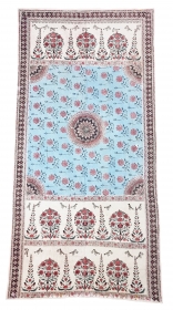 Very rare Indian 19th century shawl, extremely fine embroidery, rare blue center, very fresh colors