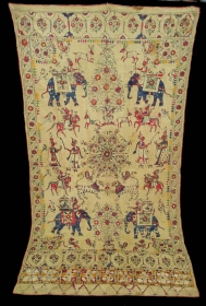 19th century kalamkari ceremonial hanging. Lovely borders and backing, size221x119cm chintz cotton. link