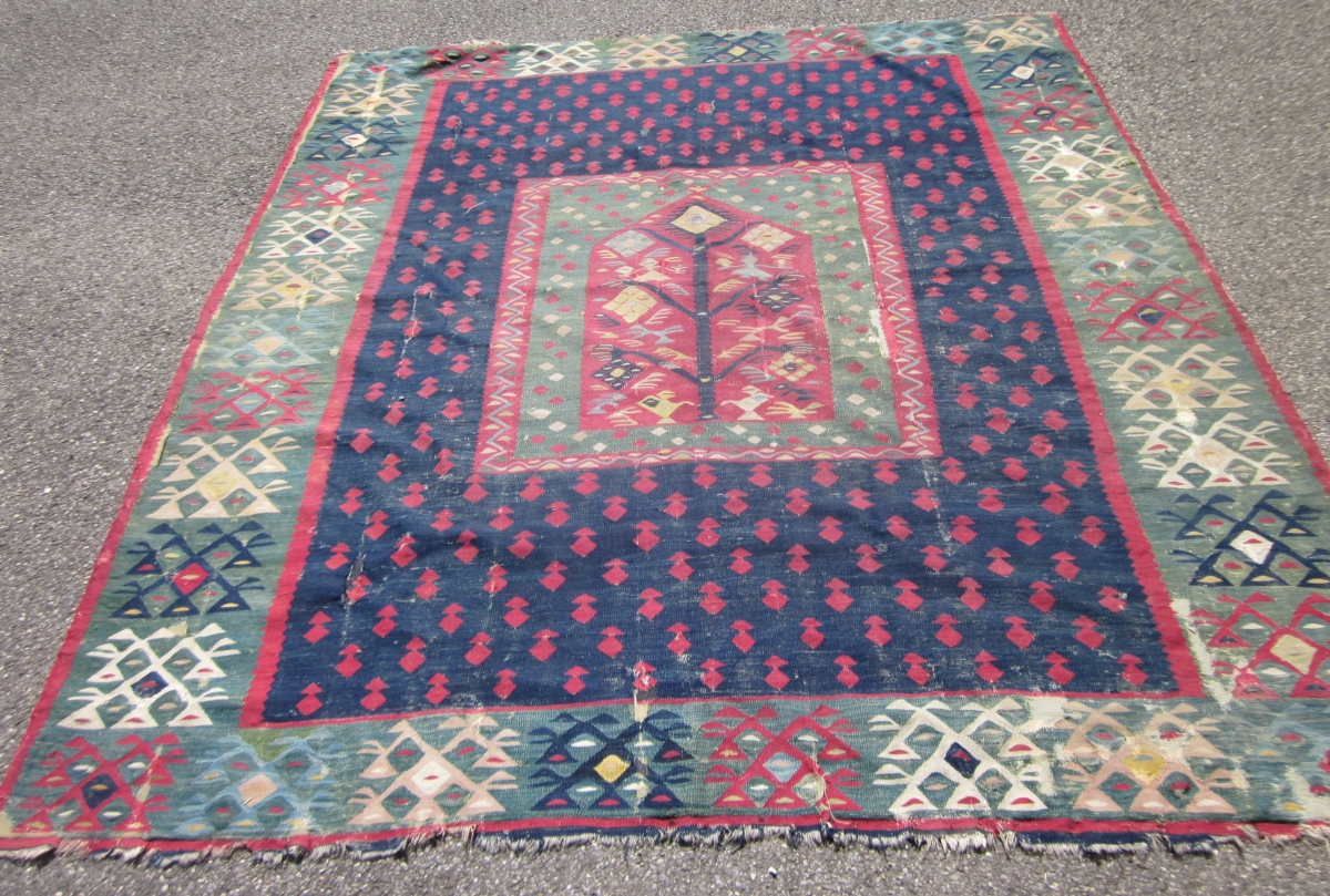antique sharkoy kilim. second half 19. century 247 cm x 217 cm mounted on linen