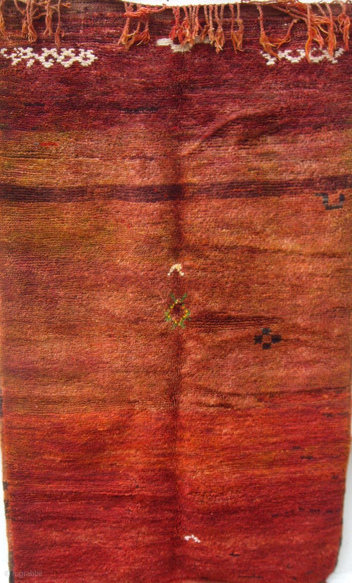 moroccan berber middle atlas rug from the region of Mrit. The field has many shades of terracotta, brown and deep reds and the "abrashes" are very attractive. Reference 2165. Size 187 x 120cms. sold, usa.