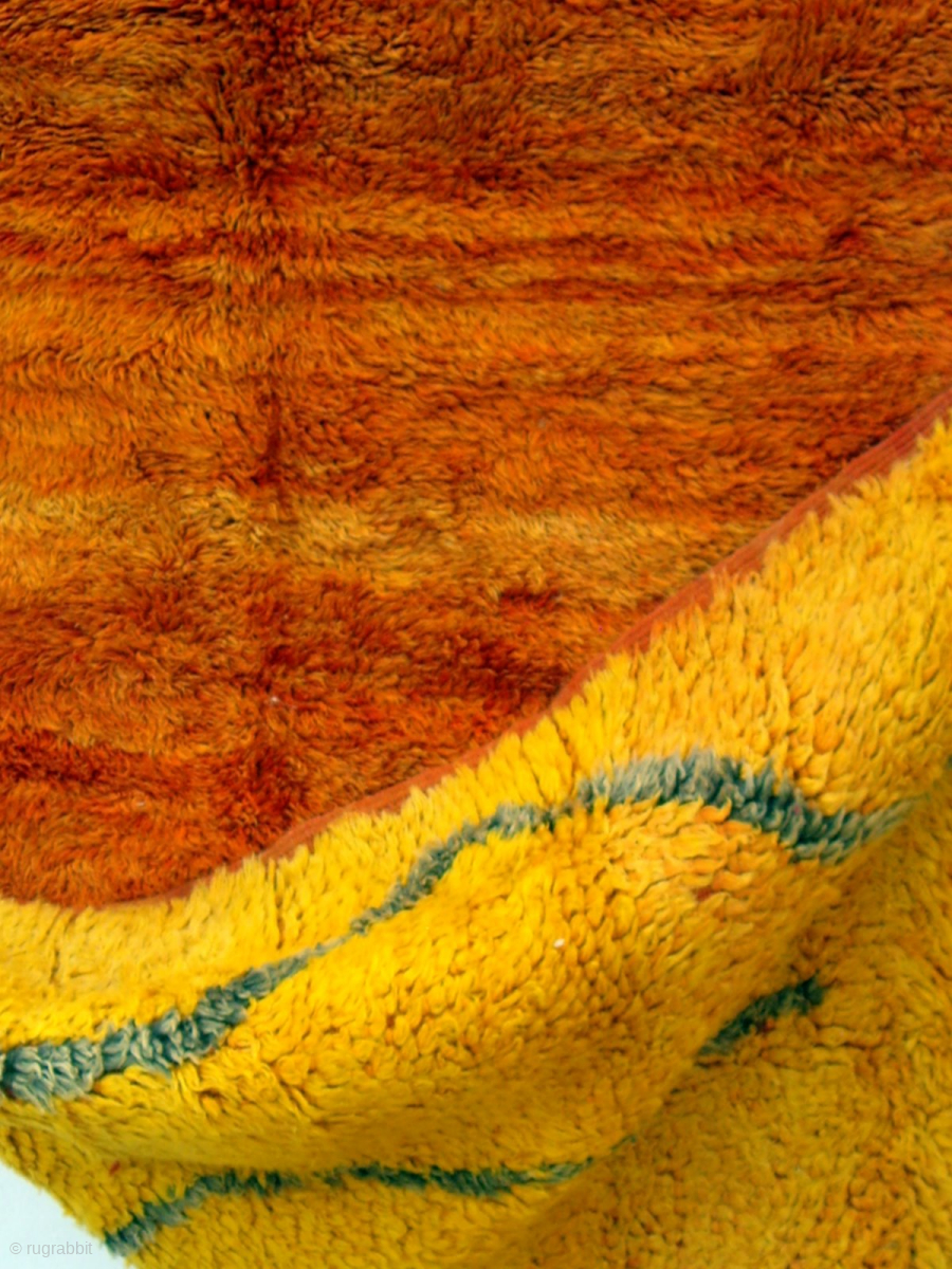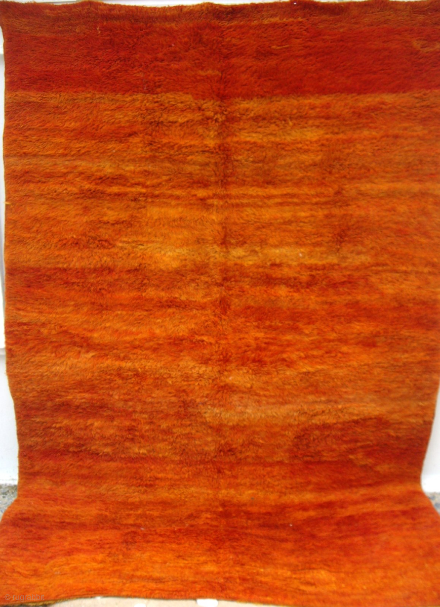 moroccan middle atlas berber double sided rug. Both sides of this rare old tribal weaving are shown. It originates from the Beni Mguild Berber group of the Middle Atlas range east of Fez and is in perfect condition, complete with original sides and end finishes. Because of its construction the rug is heavy and the wools are long and lustrous. Similar pieces are featured in `Marokko` by Kurt Rainer, plates 128 to 131. Reference 2185. Size 242 x 170 cms. Euros 1950. sold, usa.