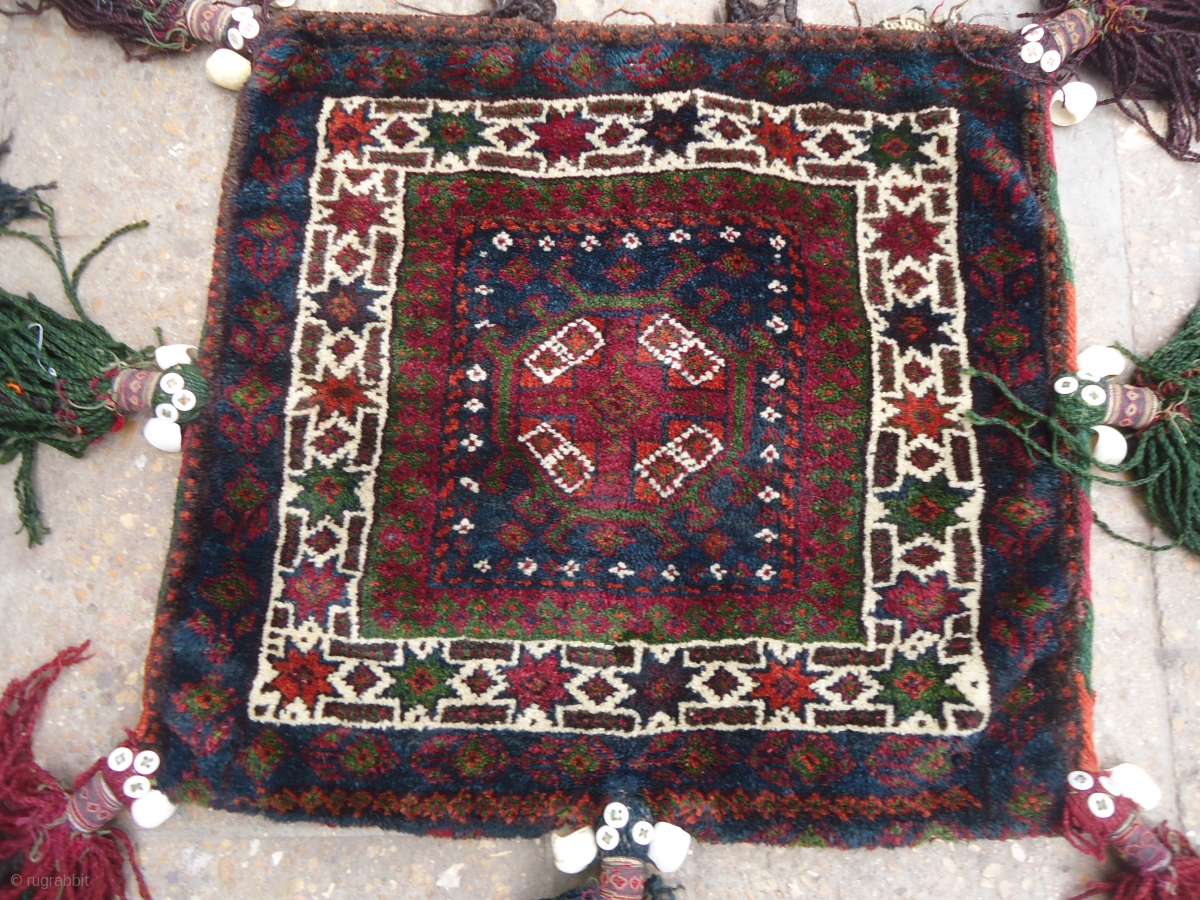 Piled Double sided Baluch Bag with great natural colors and silky soft wool and original tasseles,all original,very nice desigen,very fine weave.E.mail for more info and pics.
