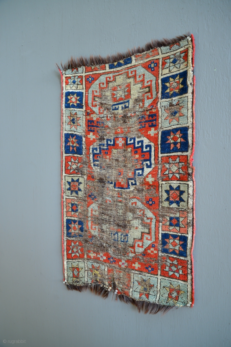 Early Anatolian Yastik with rare and unusual goat or horse hair foundation.
