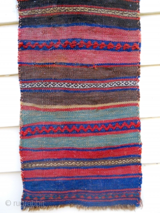 Kilim and mixed technique strip, maybe backing or bag(s) (unsewn) 10" x 40" two small holes and slight stain. $135/bo + ship