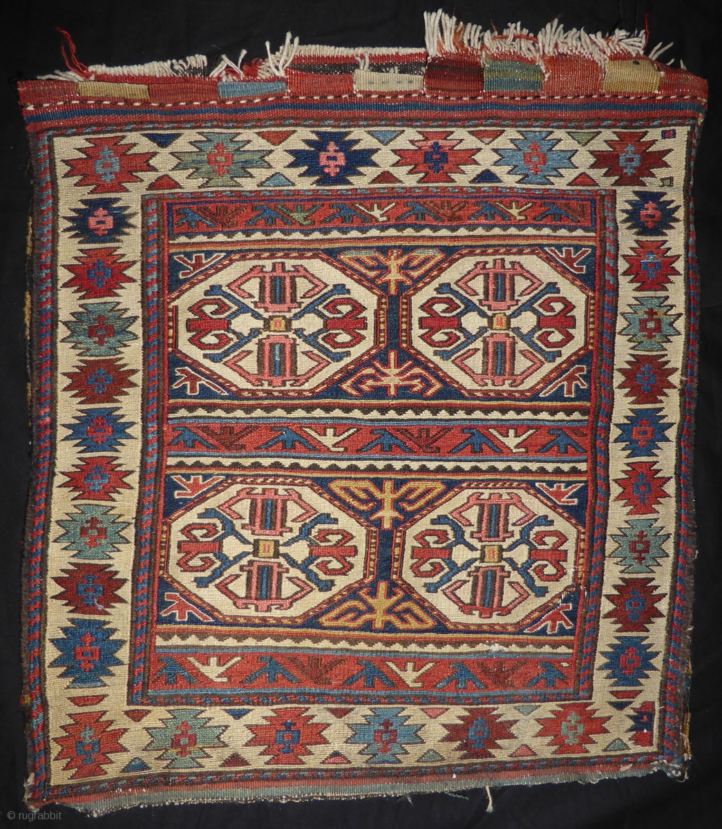 Fantastic sumac weave and all natural colors. The old dealer´s repair with brown yarn on three sides (left, right, bottom)are removed.