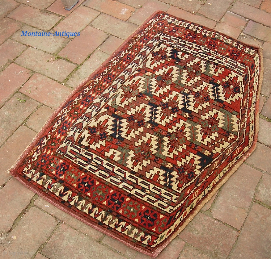 Yomud? 19th century? Sorry but you can hold what i know about Turkoman stuff in the smoke trail of a quark fart. i do know the condition is perfect. $15 us shipping.