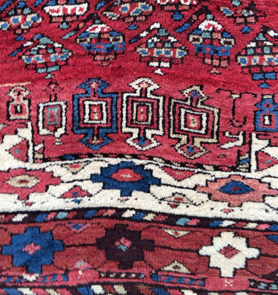 The King of Kurdish funk!!! This is such a cool, funky and graphic rug. a real village weaving. Varies from full chunky pile to a bit lower, with some moth damage on the left border mostly. Approx. 4' x 8'.