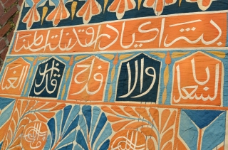 Antique inscribed Arab Ottoman Khayamiyeh Egyptian or Moroccan tent panel. 6x9 ft