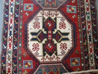 a Lori Pambak Kazak drawn in an exemplary style, with three huge octagons enclosing a large cross design each. – Partially restored sides, both ends repiled. Good overall condition.