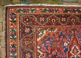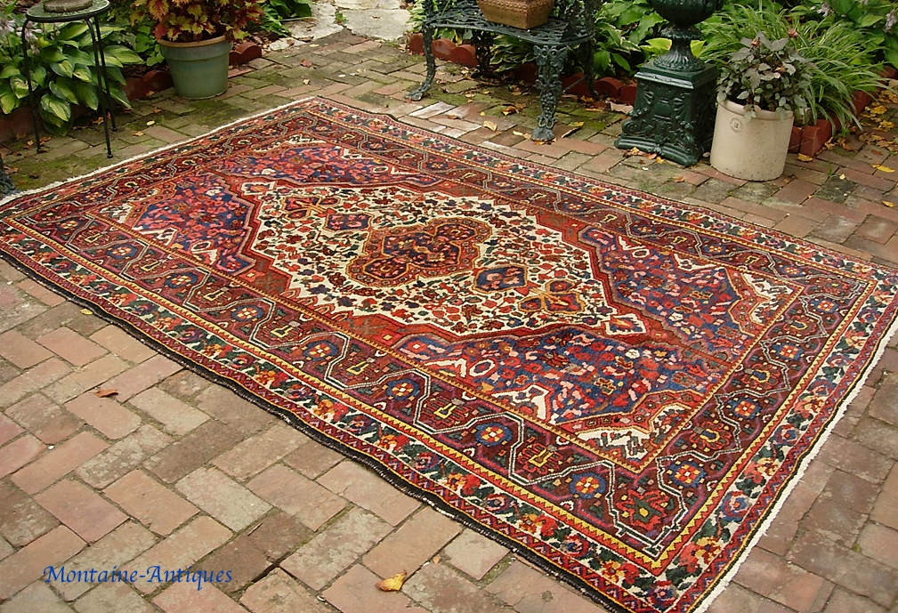 Bahktiari 5 ft 6 x 8 ft 5 inches. Good useful size. Finely balanced composition w/ bright ivory medallion. Very good condition. $30 usa shipping