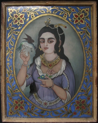 Persia - Kajar under glass painting mix with gold - Kajar Princess. Circa 1880-1900 or earlier. In great condition, Size 17" x 13" (43cm x 33cm)