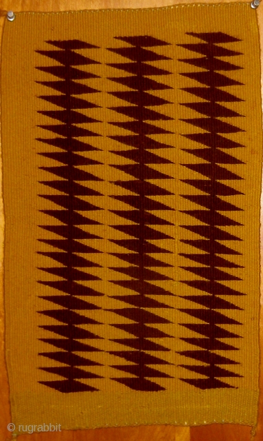 Early 20th Century unusual small Navajo weaving, extremely graphic, with only two colors used. In pristine condition. 11" by 19". Please ask for additional photos.