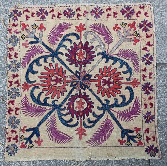 Central Asia Kirgiz cotton on silk embroidery size: 52 x 55 cm