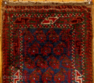 Antique Baluch balisht, mostly full pile, all natural dyes including wonderful medium blue and green, 18" by 35", do ask for additional photos.