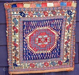 ![Complete rare early Soumak bag with its original back, 19th. century,