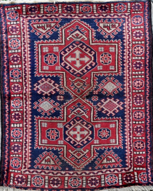 Antique Bergama Anatolian village carpet, circa 1900, all natural dyes, very silky wool, animals. 36" by 46". Please ask for additional photos.