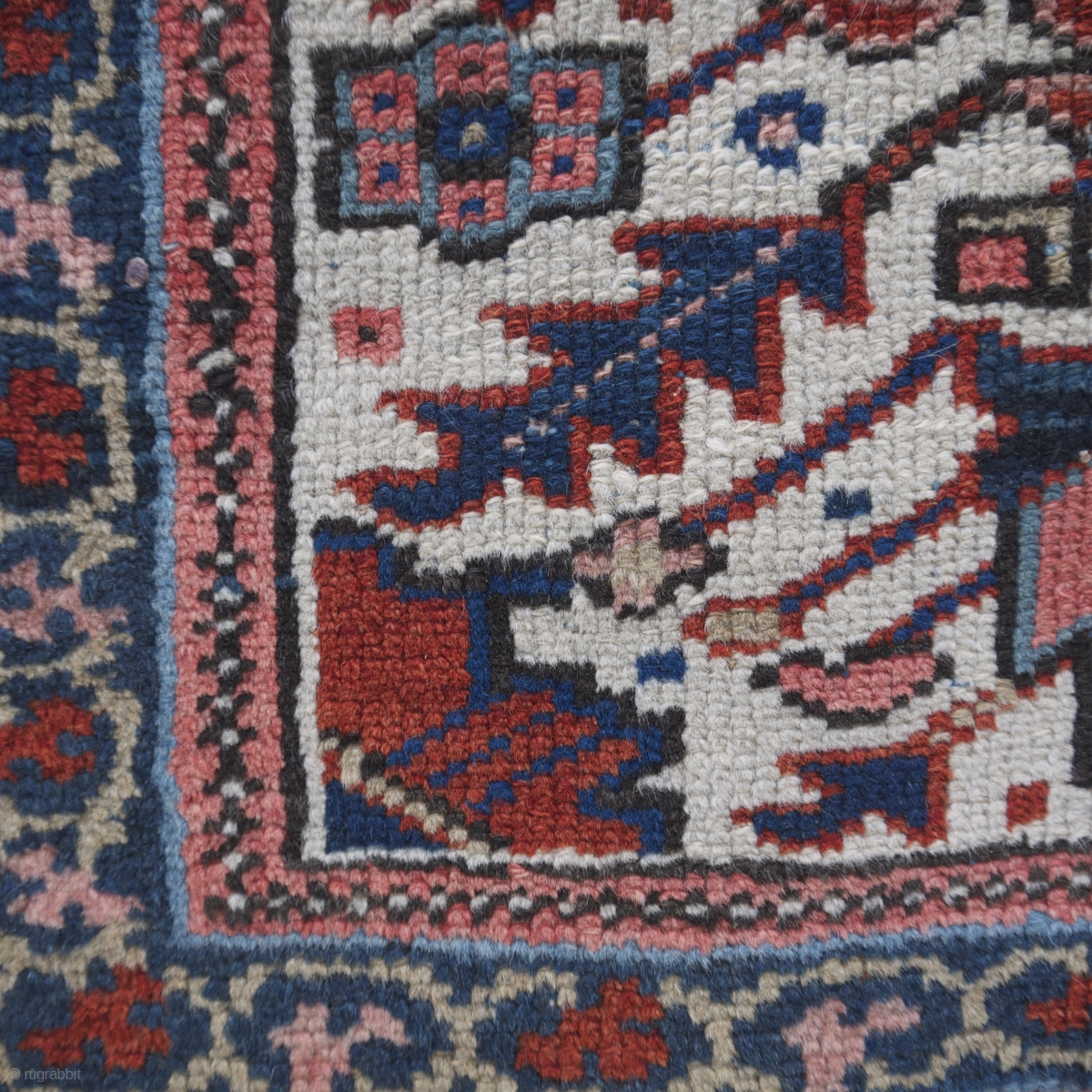 Karadja - 23" x 24" charming mat of square size. Great ivory field. Even wear. Ends secured, selvage wrapped in spots, crude small corner repair.
