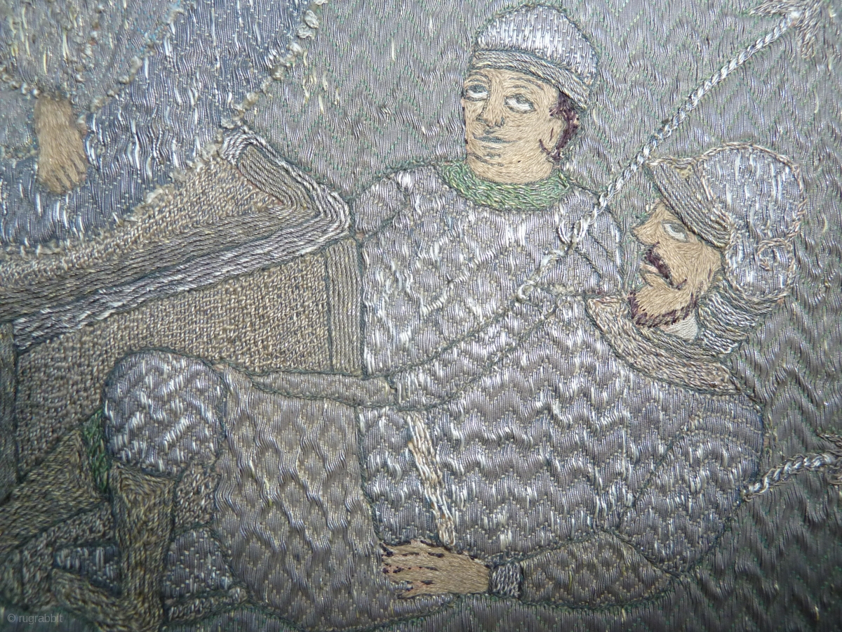 Important russian embroidery in byzantine style, scenes of Live of Christ, 16th. cent. , Aer (chalice cover)