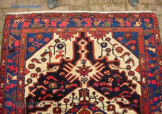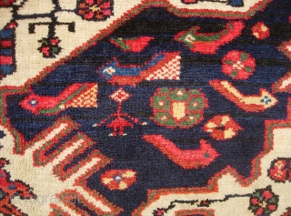 Bahktiari. 4 ft 5 inches by 6 ft 5 inches. Bold medallion rug with lots of ivory and great vivid color. Humans, birds, fish. Unusual green overcast on the sides appears to be original. Excellent. $25 us shipping.