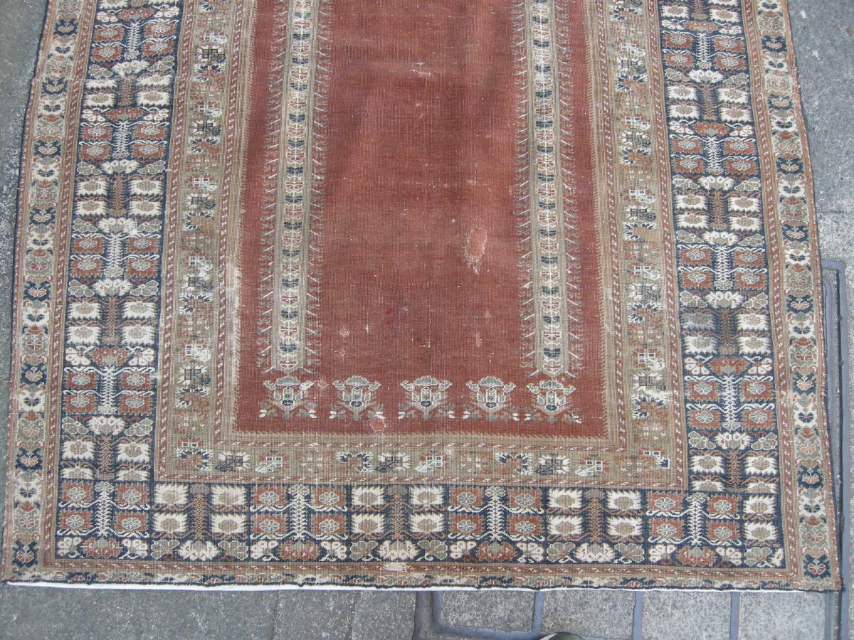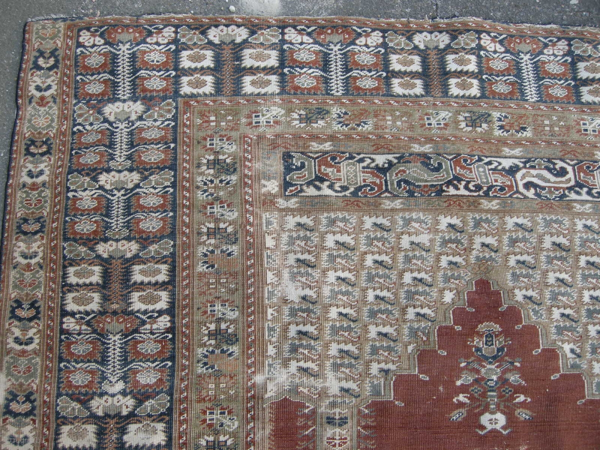 An Antique Giordes rug late 19th century , backed and ready to hang. Approx 4ft8 x 3ft8,