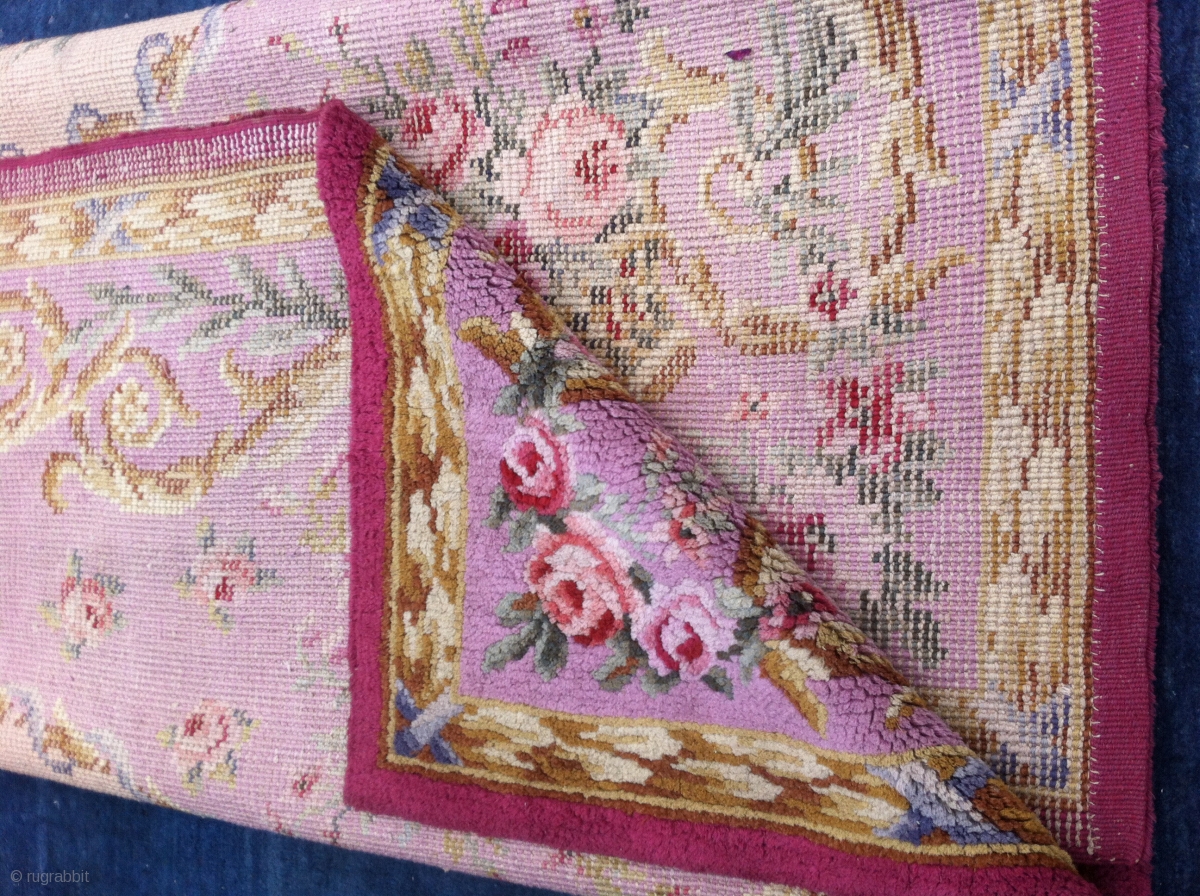 jolie savonnerie 1900 nouée main a aubusson bon etat. 277x223cms