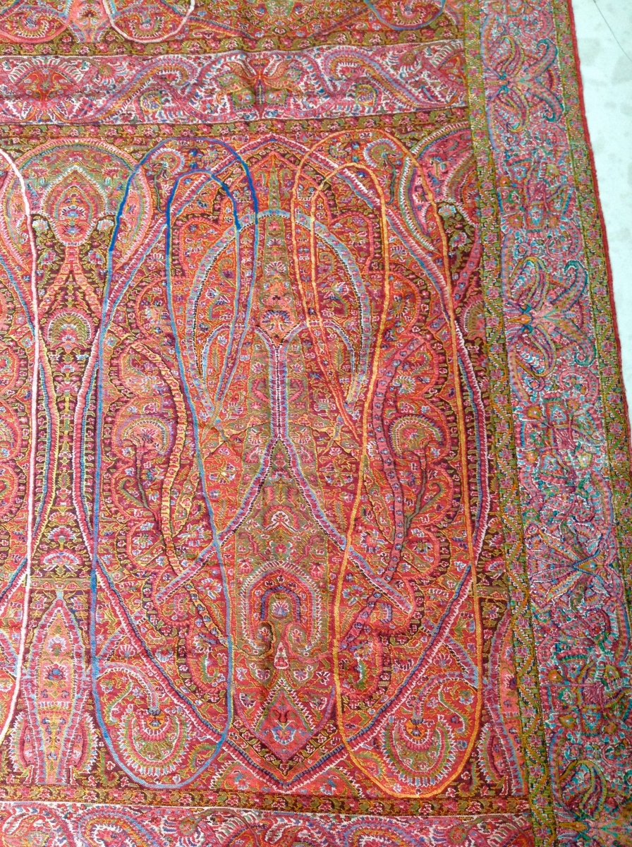 Rare master peace of antique Kashmir shawl Beautiful coloures and very long .excellent weaving