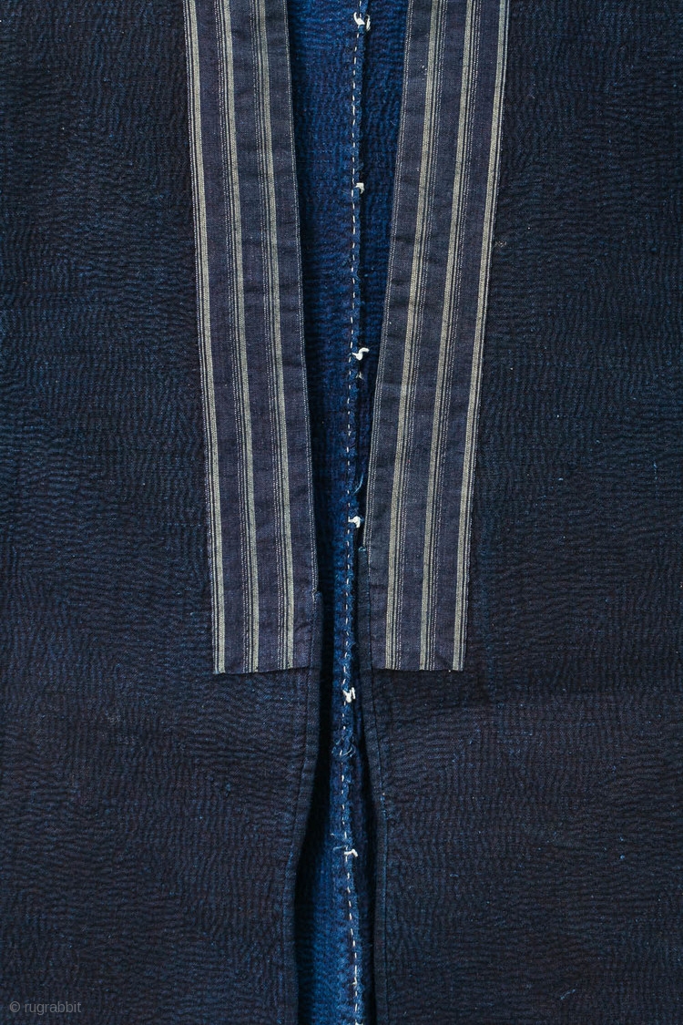 With the passing of time, the sashiko pattern would gradually emerge, for the thread color fades faster than that of the cloth. This example, however, has been scarcely worn, possibly kept in storage for safe keeping.
