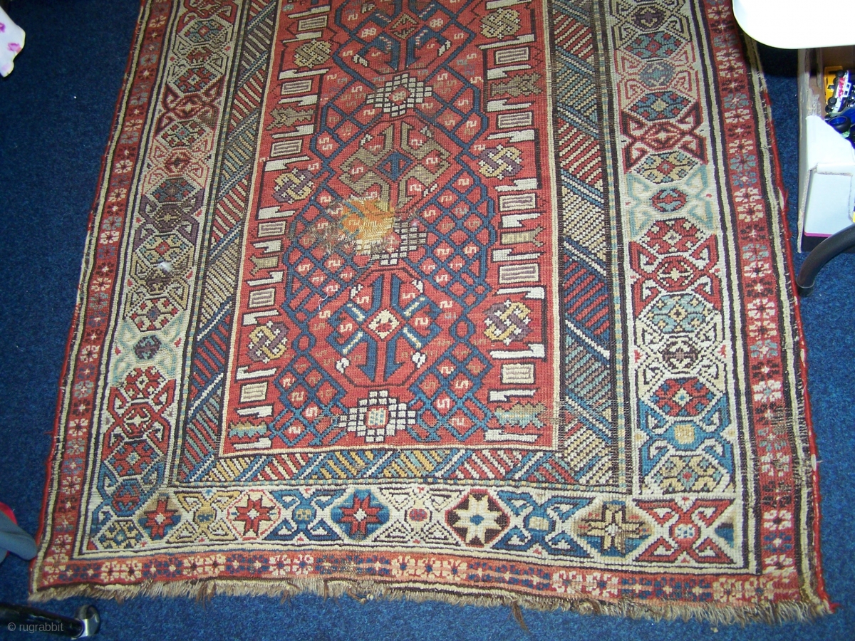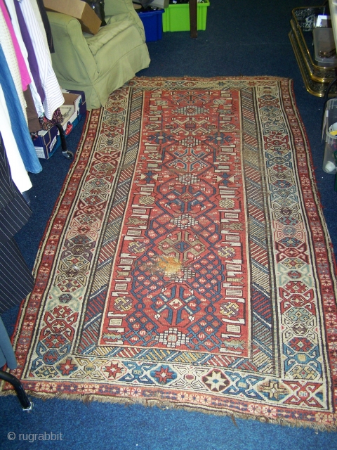 Turkish or West Caucasian long rug, not quite sure which, allover low pile with foundation showing in places, small patch, sides replaced, 19th.century, 265 x 129/138cm (lightly wider at one end than the other)