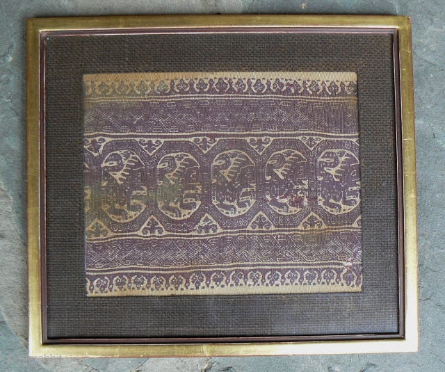 Antique Coptic Textile from the 4th-6th century. The textile is in excellent condition, and it's slightly more burgundy-colored that shown in the photos. In a gold painted wooden frame. i haven't opened the frame, so i don't know how much more of the textile exists under the mat. Textile/Mat size = 9.5 x 7.5 inches Frame size = 13.5 x 11.5 inches. See other textiles and rugs at www.banjaratextiles.com