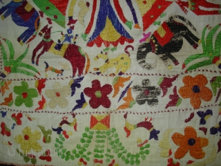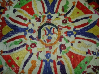 Chamba Rumal From Kangra Himachal Pradesh,India.Circa 1900.Showing the Dance of Krishna and gopis around the blue-bodied god Krishna draped in a yellow dhoti enthroned on a lotus.Its size is 82cm x 82cm(DSC00513 New).