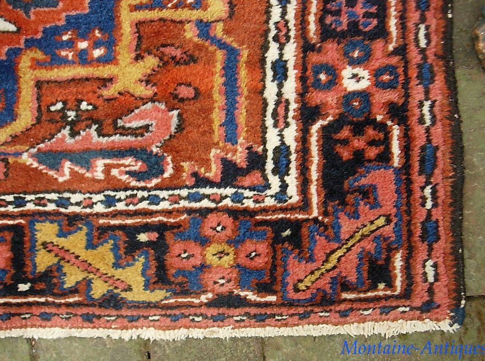 Heriz. 2 ft 10 in x 4 ft. 3 inches. Single weft but every other aspect is Heriz. Open design. Good colors. Very nice condition. $20 for ups shipping to lower 48